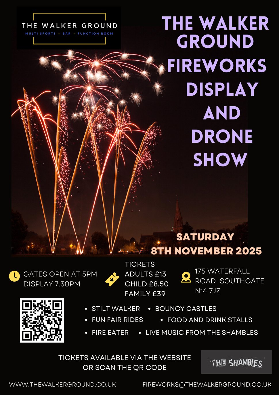 This year’s Fireworks Night at The Walker Ground will feature the debut of our spectacular Drone Show – included with your entry ticket!