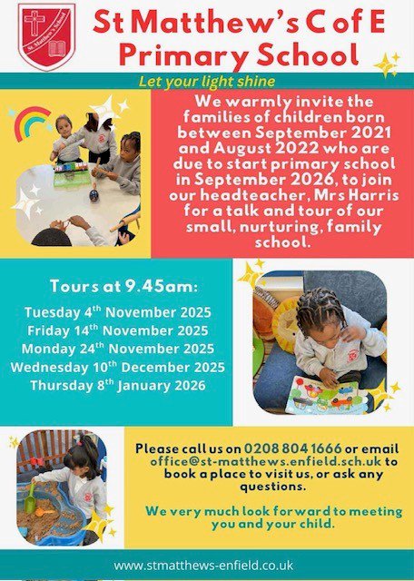 We warmly invite the families of children born between September 2021 and August 2022 who are due to start primary school in September 2026, to join our headteacher Mrs Harris for a talk and tour of our small, nurturing, family school.